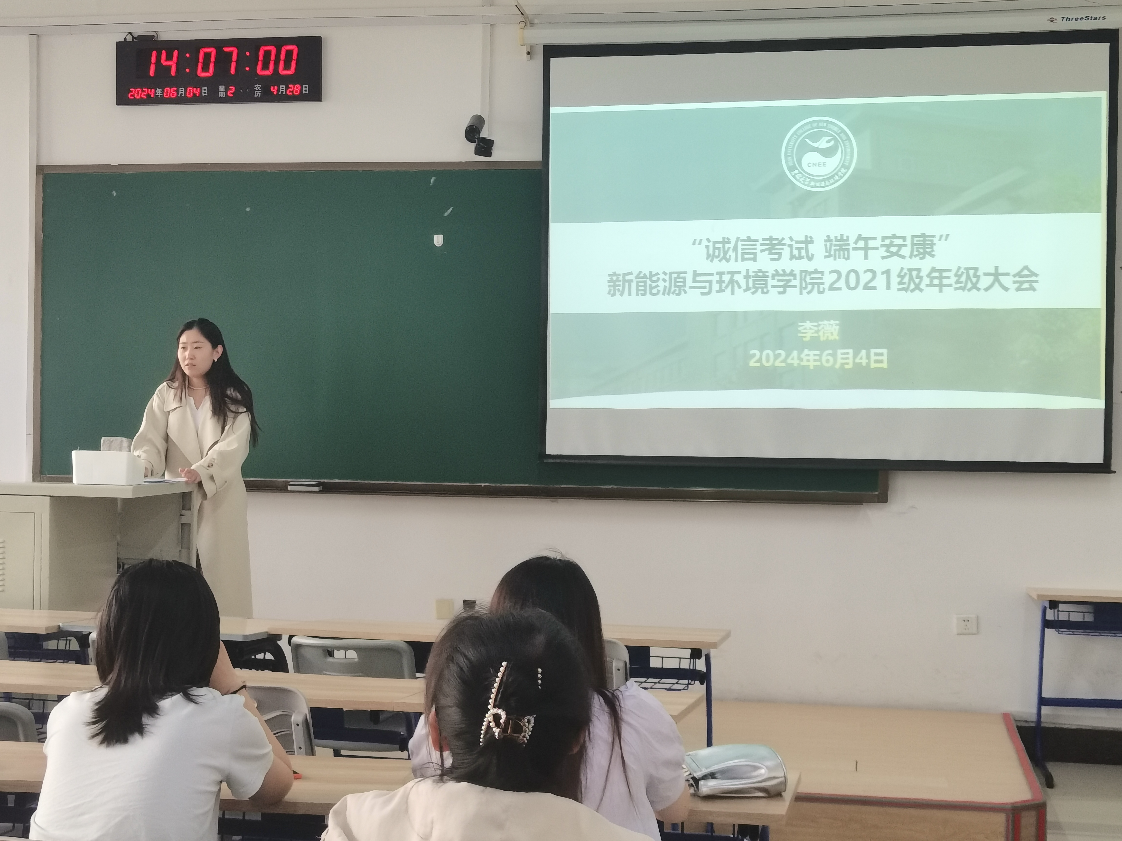 院学生工作办公室全体辅导员于2024年6月5日-6日先后组织各年级同学开展了“诚信规范,安康端午”主题年级大会。