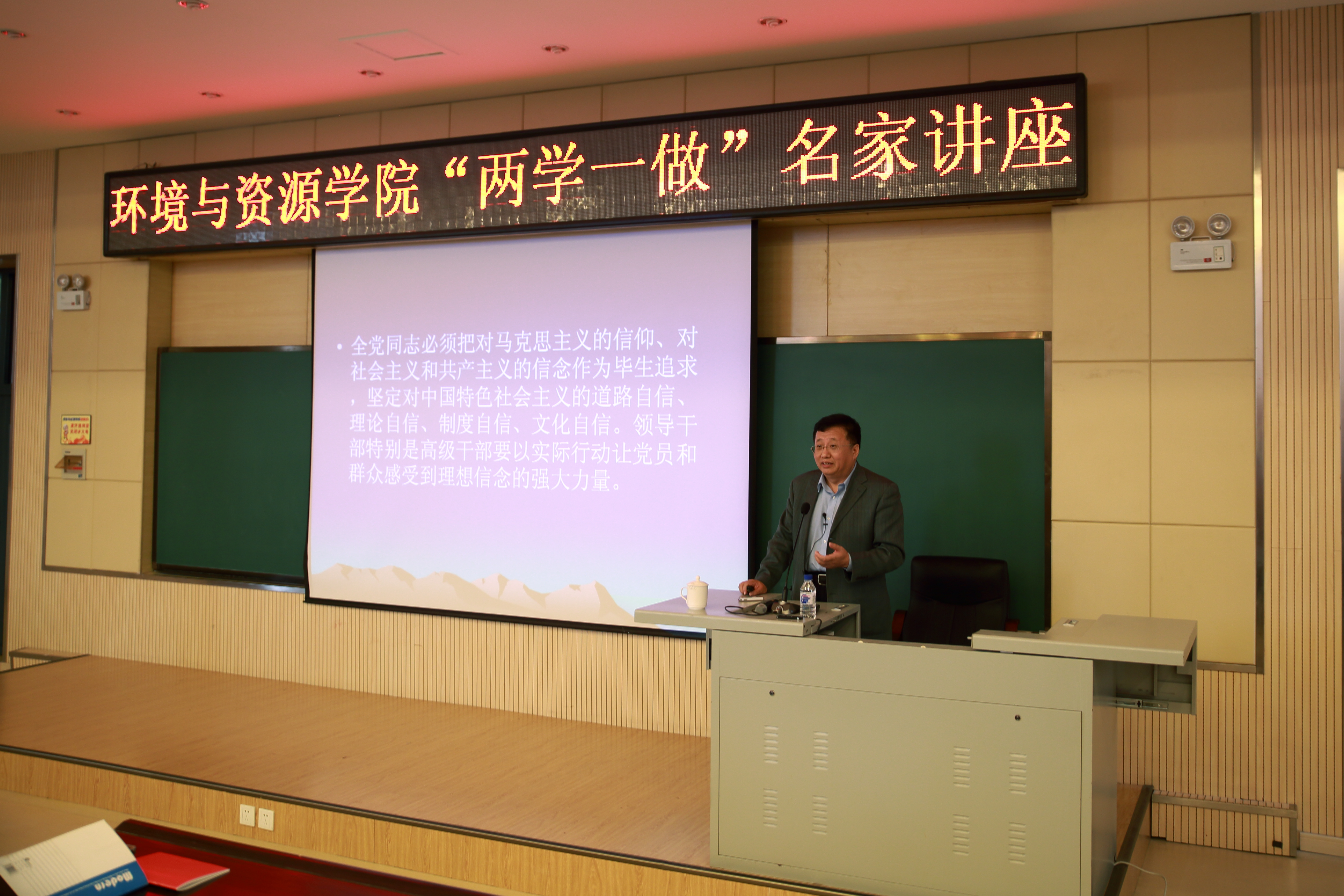 做题为“不忘初心,坚定理想信念”的“两学一做”专题讲座。北区综合办公室主任孙英男、环资欧洲杯领导班子、北区综合办教职员工、环境与资源欧洲杯师生聆听了讲座。会议由环境与资源欧洲杯党委书记陆志东主持。